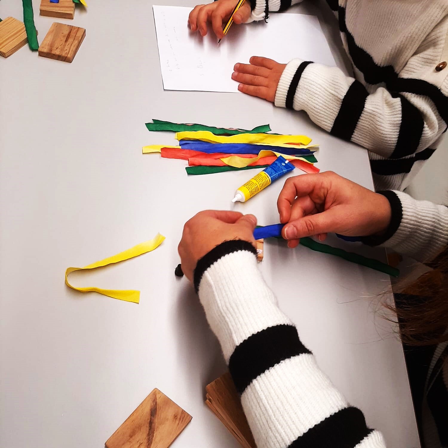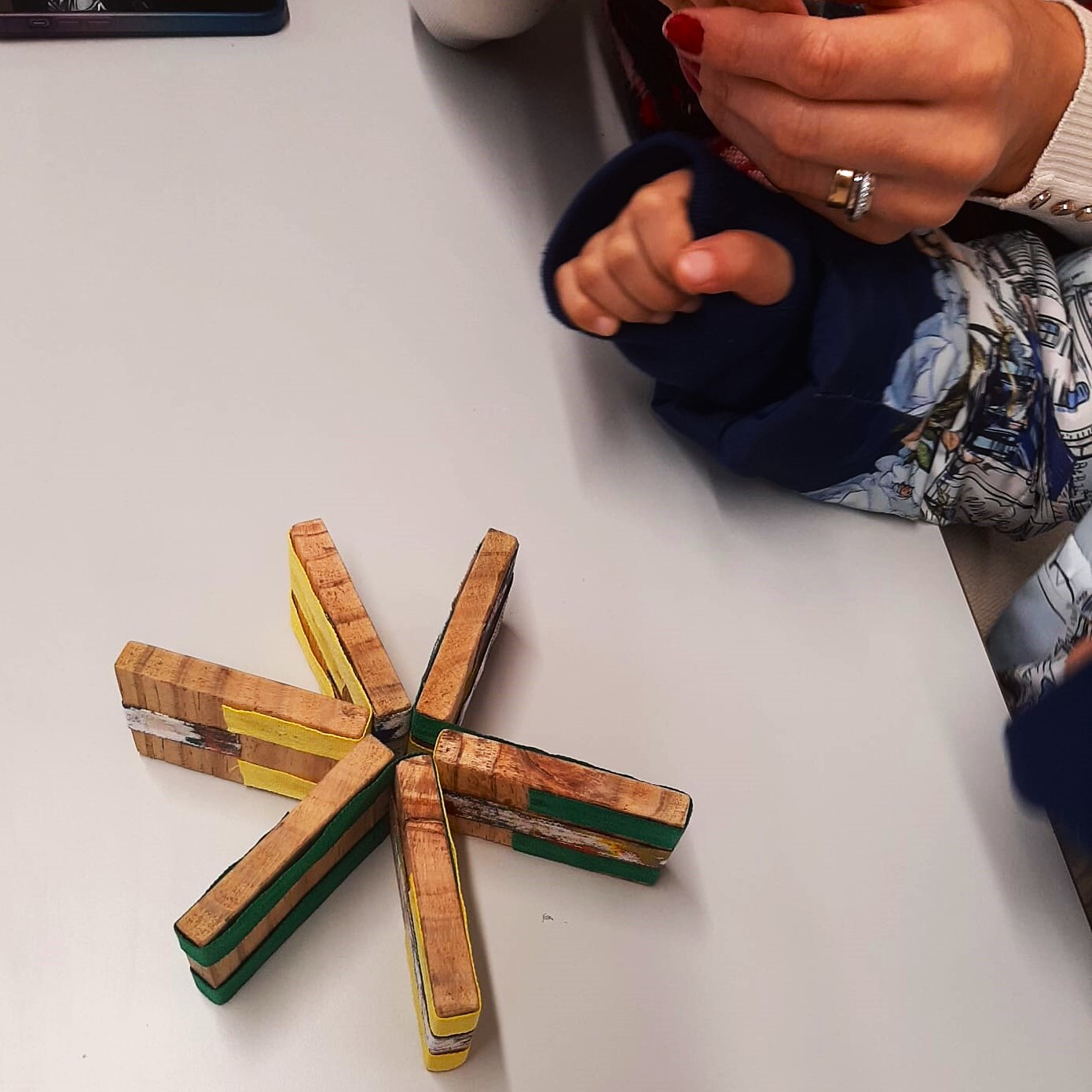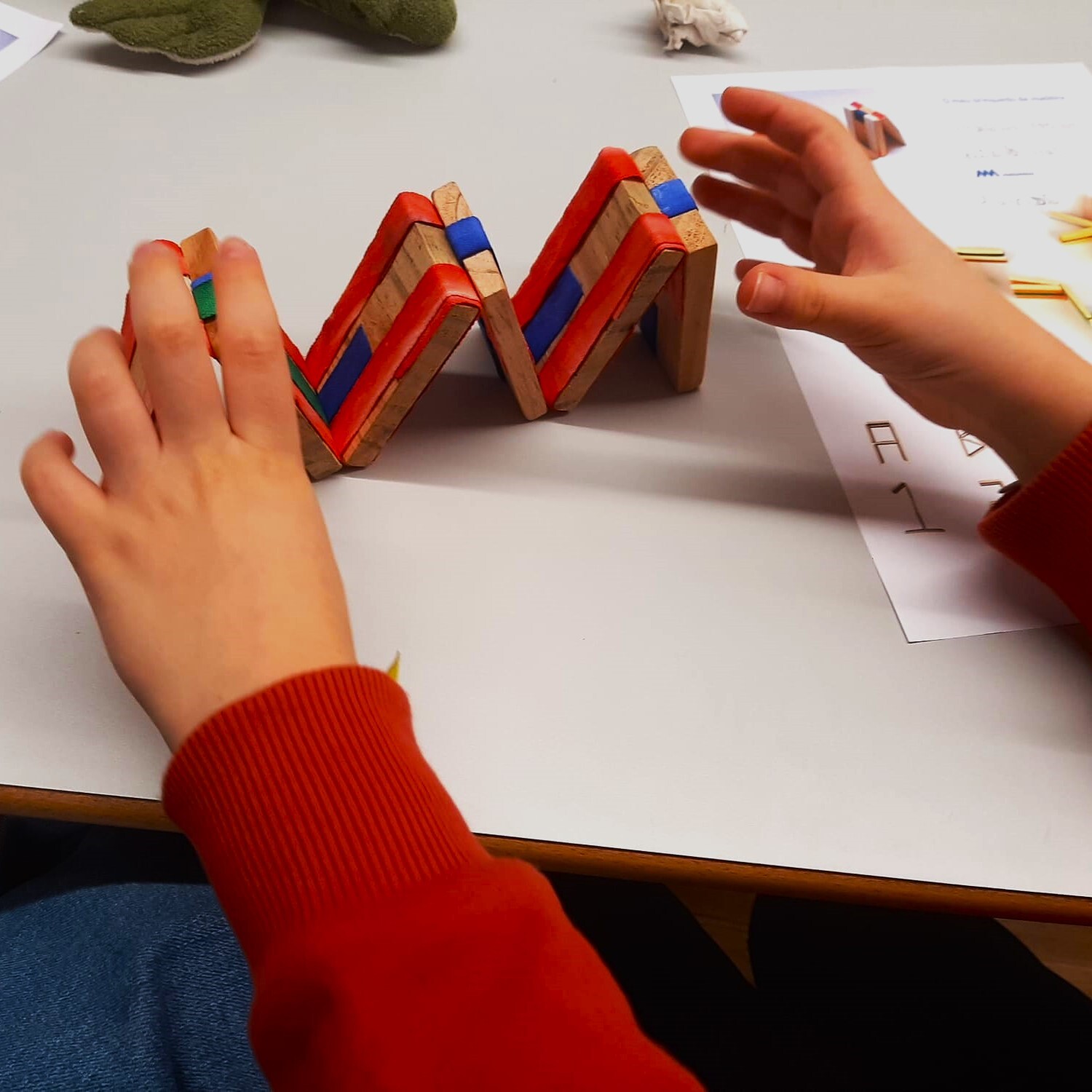 A criança trouxe o adulto e a partir da exposição temporária “Memórias das Escolas do Palacete” explorámos, em família, como eram os brinquedos de outros tempos e transformámos blocos de madeira, num jogo divertido!