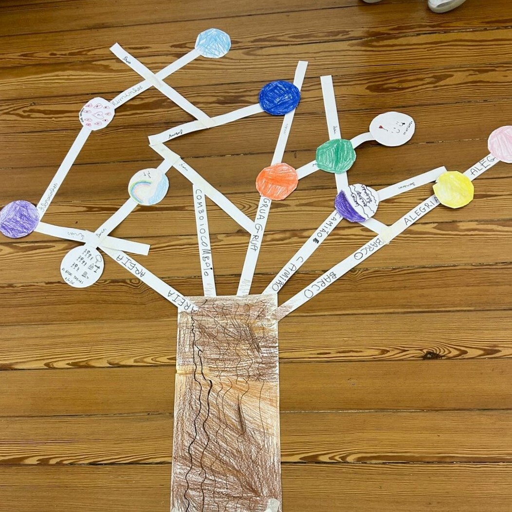 Fizemos o paralelismo entre o crescimento das árvores e das famílias: falamos das várias partes das árvores e aprendemos o conceito de árvore genealógica, a partir da família do Visconde de Trevões. Tivemos a sorte de contar com uma família que faz parte daquela árvore!