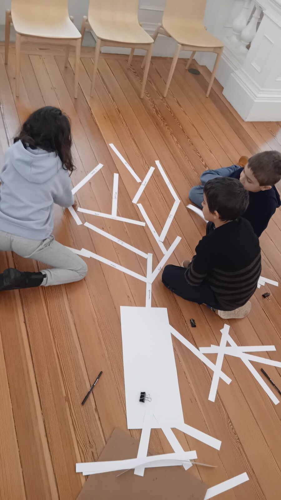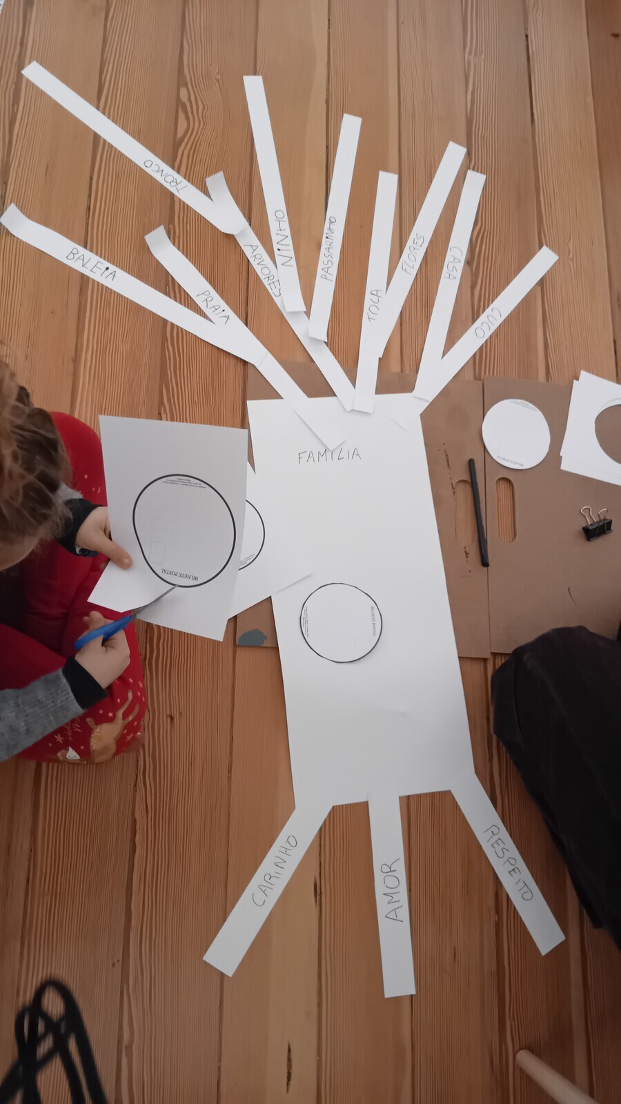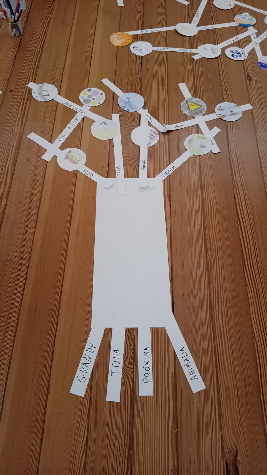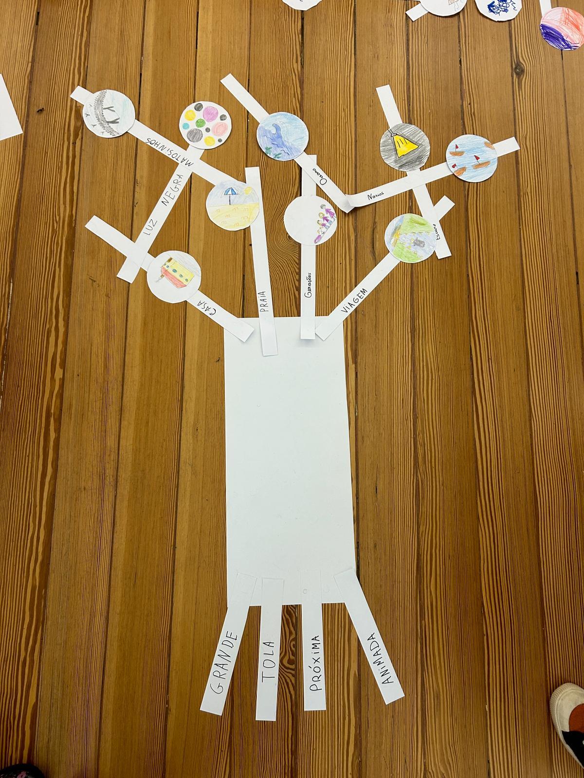 Colecionamos memórias, que foram ramos, as quais transportamos pelo Museu até ao momento de construir uma árvore e ilustrar essas histórias em postais, semelhantes a frutos: as árvores de todas as famílias formaram a FLORESTA DE MEMÓRIAS, da qual floresceram sorrisos, numa manhã de divertidas cumplicidades!